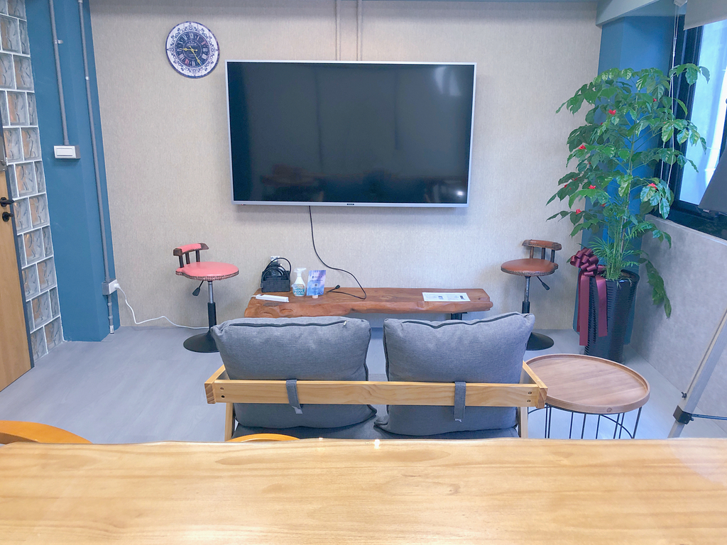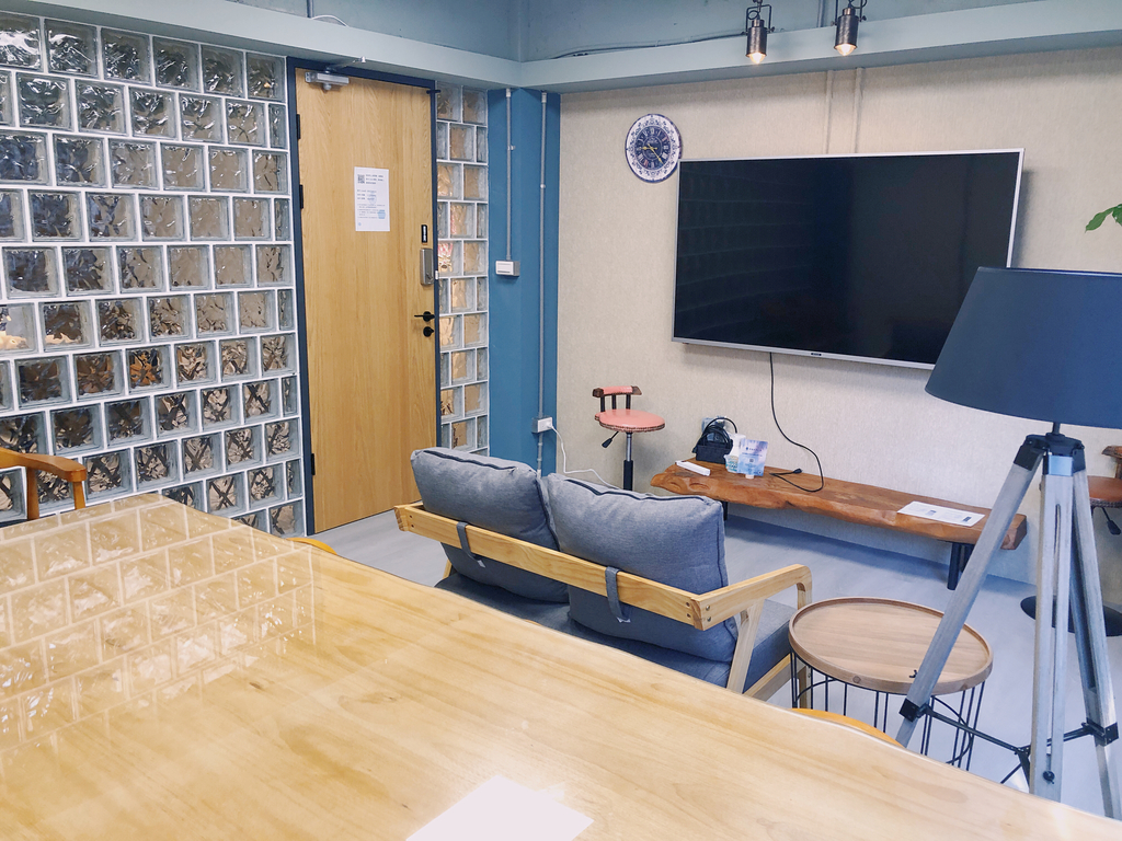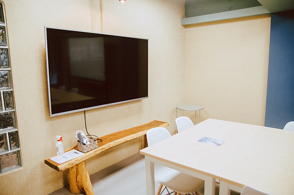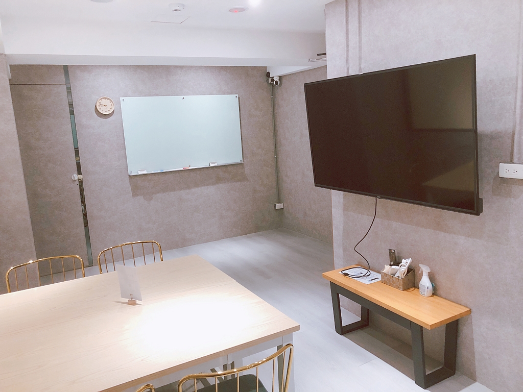 面積:2.6坪人數:4人器材:300mb/s無線Wifi(不提供實體網路孔)、65吋4K螢幕(沒有電視頻道、不能連網)、HDMI線材、固定式白板(含板擦白板筆)、冷暖氣